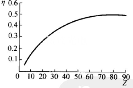 圖 4. 背散射信號(hào)產(chǎn)率 η 與原子序數(shù) Z 的關(guān)系。Z 越大,信號(hào)越多。