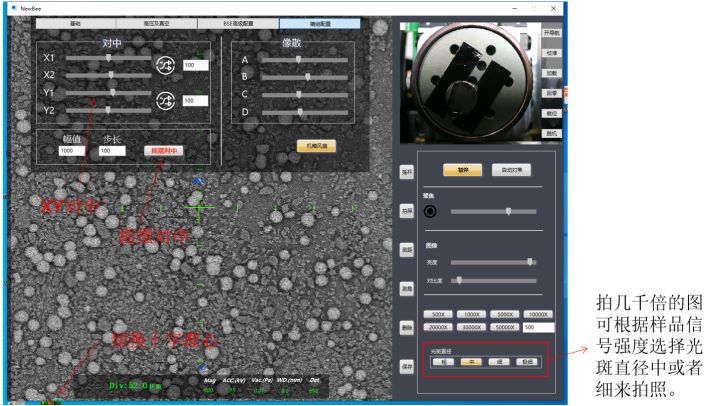 圖三:臺(tái)式掃描電鏡調(diào)整光斑